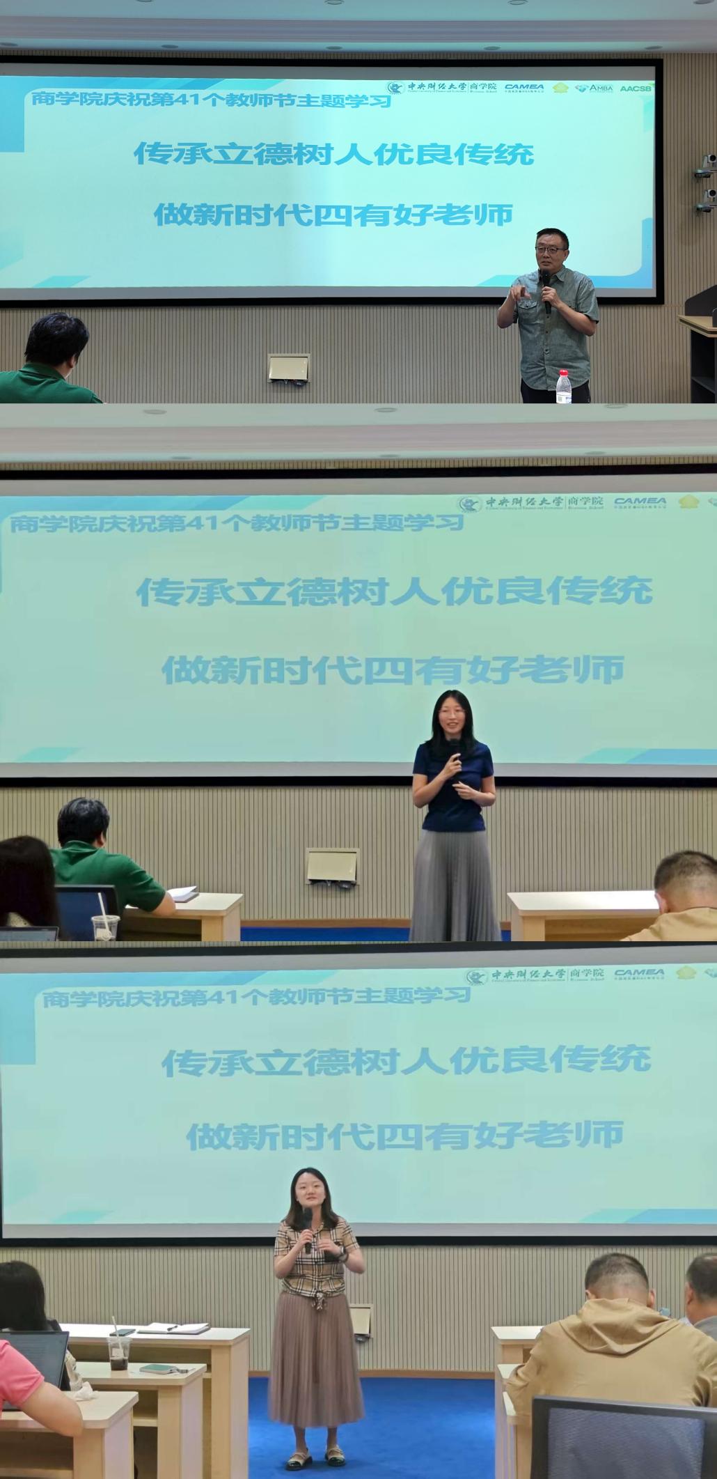 2025年9月10日下午,pg电子官方网站在MBA教育中心A28举行了以“传承立德树人优良传统,做新时代四有好老师”为主题的教师节学习活动。本次活动旨在通过学习pg电子官方网站首届“龙马奖章”获得者王巾英教授优秀事迹,激励广大教职工不忘初心,牢记使命,努力成为新时代的“四有”好老师。学院全体教职工参加学习,活动由pg电子官方网站副院长顾雷雷主持。