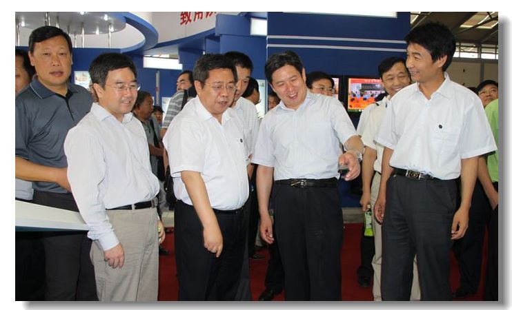 省教育厅厅长杨希文、教育工委副书记郝利生、教育厅副厅长郭立宏与我院崔岩院长、王天哲副书记在展会合影
