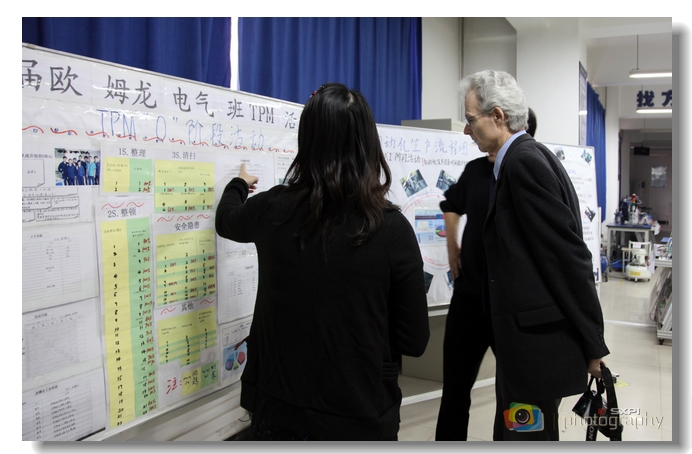 胡格先生一行查看欧姆龙订单班培训展板