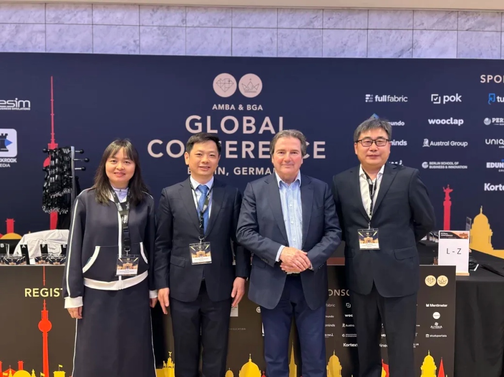 Prof. Zhu Fei, Deputy Director of the MBA Education Centre and Vice Dean of CUFE Business School, was invited to lead a team to attend the 2025 global annual conference of the Association of MBAs (AMBA) and the Business Graduates Association (BGA), held in Berlin, Germany from May 19th to 21st. Also in attendance were Kong Weiming, Director of MBA Student Affairs and Career Development, and Prof. Guo Xin from the MBA Teaching Management Department. The conference gathered deans of top business schools worldwide, academic leaders, and industry experts to explore the innovative development of business education in the AI era and its future direction. Prof. Zhu Fei represented CUFE Business School to share the π-shaped talent development philosophy and model of CUFE MBA at the China Business School Special Session of the conference and had extensive exchanges and discussions with representatives of other business schools on the topic.