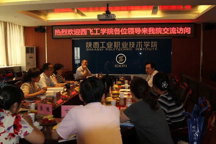 7月15日上午,西飞工学院党委书记赵双双及院长由正军、院办主任王新昌、教务主任高军及相关教研室主任一行12人来我院交流工作。