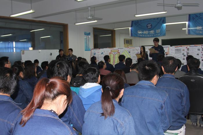 ——记2013届欧姆龙订单班“TPM第1阶段总结大会” 4月9日上午,“欧姆龙订单班TPM(全员生产维修)第1阶段总结大会”在电气工程学院电控实训室举行。